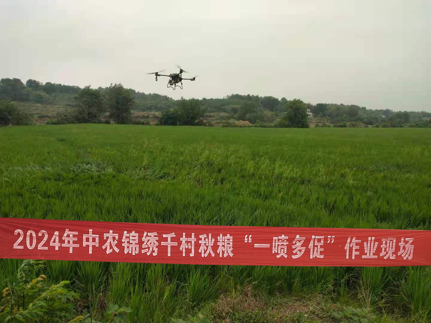 中農錦繡千村總經理王云說,“一噴多促”是在作物生長中后期利用植保無人機將殺蟲殺菌劑、葉面肥、植物生長調節劑等混合噴施,一次作業可以實現防病治蟲、促生長發育、促灌漿成熟、促產量提高等多重功效,減少了化肥農藥的使用量,為農戶帶來了實實在在的經濟效益。