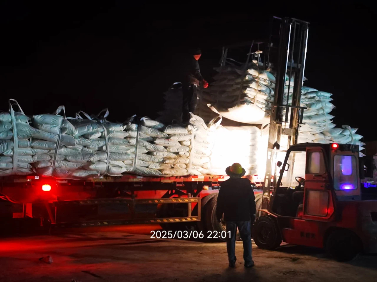 3月6日晚,中農(青海)鉀鹽開發有限公司【簡稱中農(青海)鉀鹽】大浪灘寒風凜冽,氣溫驟降至零下15℃。中農(青海)鉀鹽的露天堆放場地上卻燈火通明、熱火朝天。為全力響應中農控股“保春耕、穩供應”的號召,領導班子帶頭沖鋒,與黨員干部、車間工人共同組成突擊隊,連續4小時奮戰,完成近200噸鉀肥裝車任務。