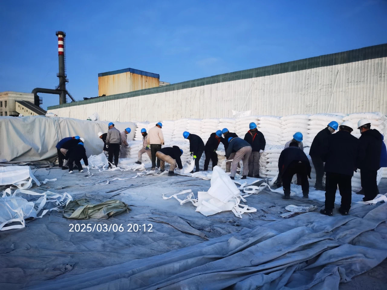 盡管帽色區分了職責,但現場無一人置身事外。領導班子成員帶頭搬運裝貨,從晶鉀車間緊急抽調工人分組協作搬運、碼垛,質檢人員同步核驗批次……在零下15℃的嚴寒中,大家以“倒班不停工”的方式高效推進作業,最終于23時30分完成全部裝車任務,廠區內外等候的運輸車準時發往春耕一線地區。