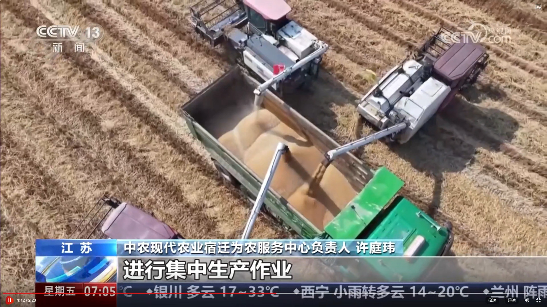 中農現代農業宿遷為農服務中心負責人許庭瑋:土地全程托管服務包含種肥藥以及農機作業,通過組織自有農機以及當地的農機合作社進行集中生產作業,每畝節約成本約50元。