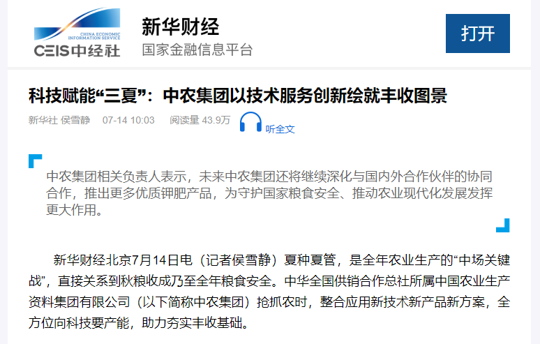 中農集團相關負責人表示,未來中農集團還將繼續深化與國內外合作伙伴的協同合作,推出更多優質鉀肥產品,為守護國家糧食安全、推動農業現代化發展發揮更大作用。