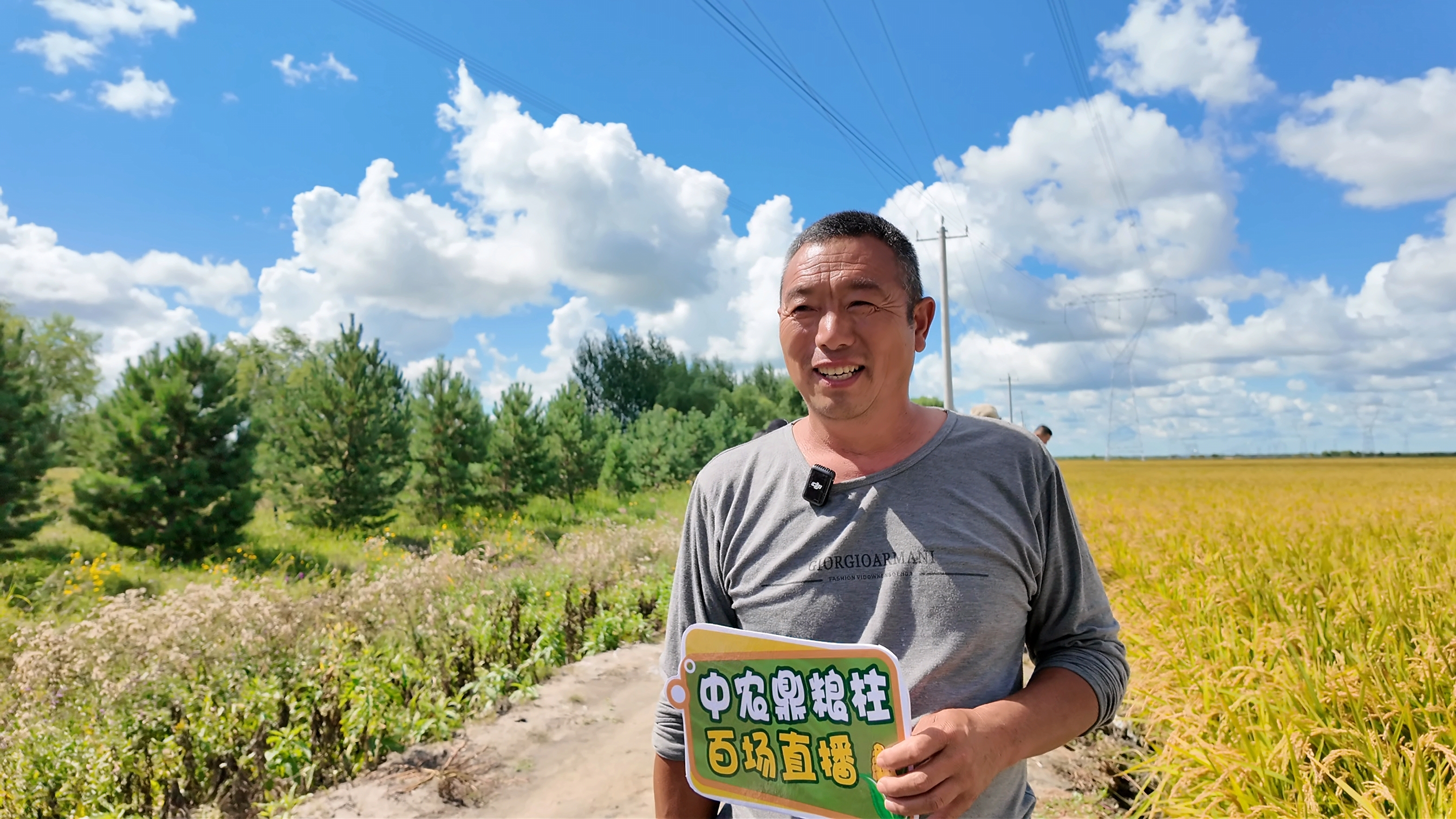 “家人們請看,在我左手邊的1000多畝地,全部應(yīng)用了‘中農(nóng)鼎糧柱’方案;右手邊是對照區(qū),兩邊的差別一眼就能看出來。”在位于齊齊哈爾市梅里斯區(qū)哈拉海農(nóng)場的一片稻田旁,中農(nóng)立華黑龍江省高級應(yīng)用技術(shù)主管孫喜臣正在手機前直播講解水稻豐收的技術(shù)要點。