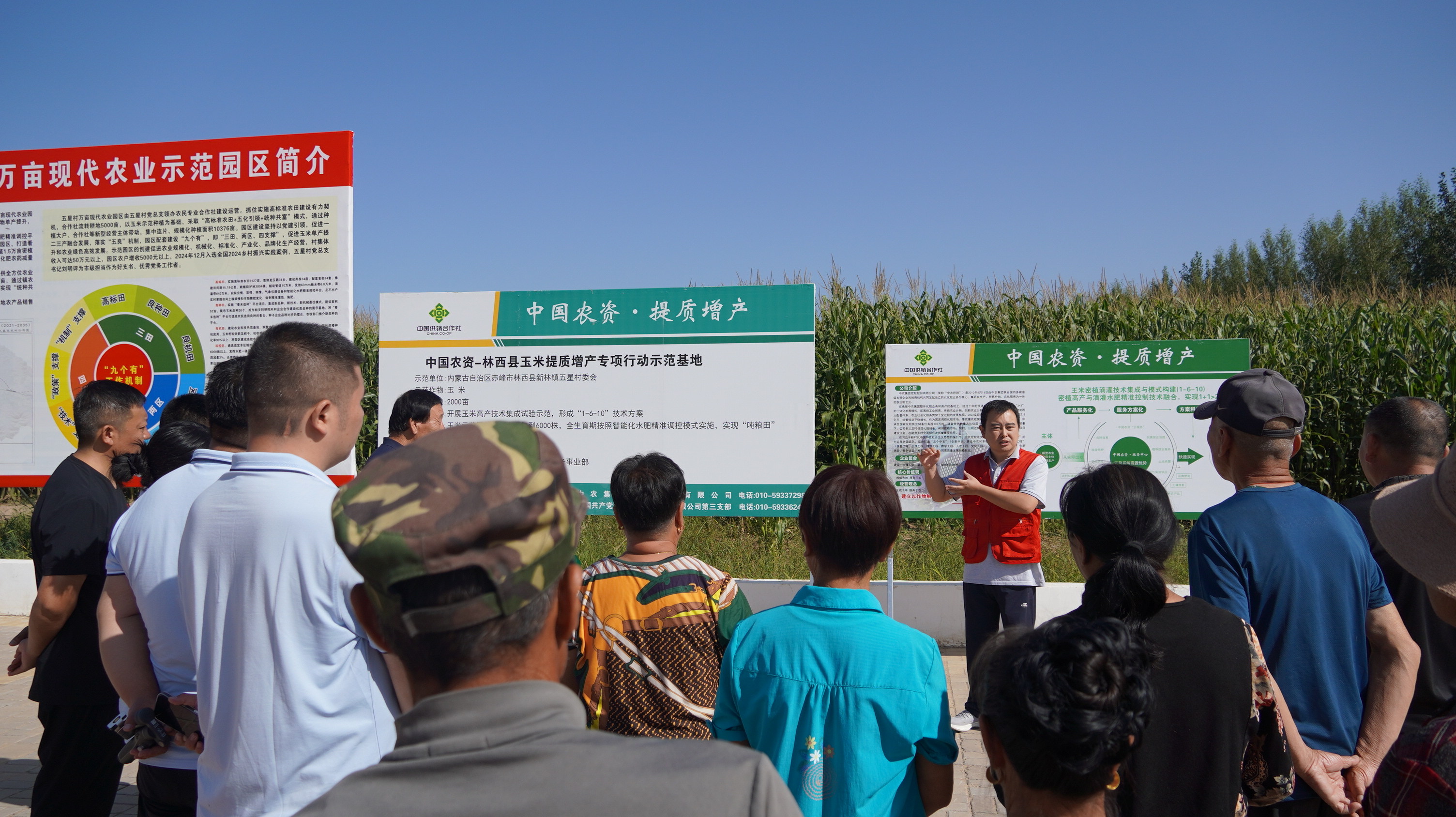 秋收時節,內蒙古赤峰市林西縣新林鎮五星村的田野上,一望無際的玉米金黃豐盈、飽滿挺拔。田埂上人頭攢動、討論熱烈,中國農資·(林西)為農服務中心組織的玉米密植精準調控高產技術觀摩會正在火熱進行。來自周邊鄉鎮的種植大戶、農技人員和村民代表圍在示范田旁,查看玉米長勢,交流種植心得,臉上都寫滿了對豐收的期待和對新技術的渴望。